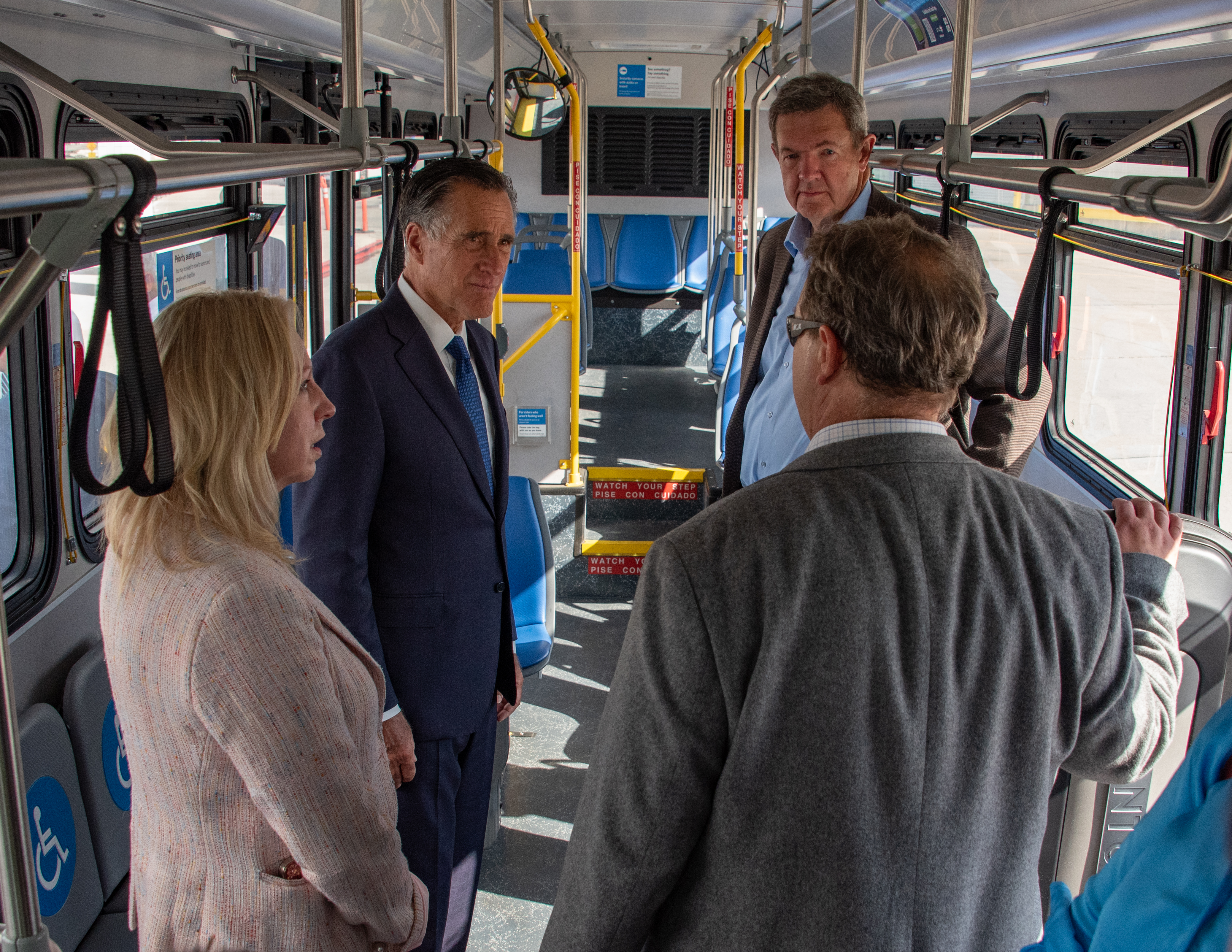 Hal Johnson of Innovative Mobility Solutions highlighted UTA's fleet electrification efforts that will lead to cleaner air along the Wasatch Front, a necessary improvement when the majority of Utahns live in a dense stretch between the Wasatch mountains and the Great Salt Lake. UTA On Demand, which recently received 10 new ADA accessible Ford E-Transit™ vehicles, was highlighted by Shaina Quinn, program manager of Innovative Mobility Solutions, as she and Senator Romney rode in a UTA On Demand vehicle from Salt Lake Central Station to UTA Headquarters.