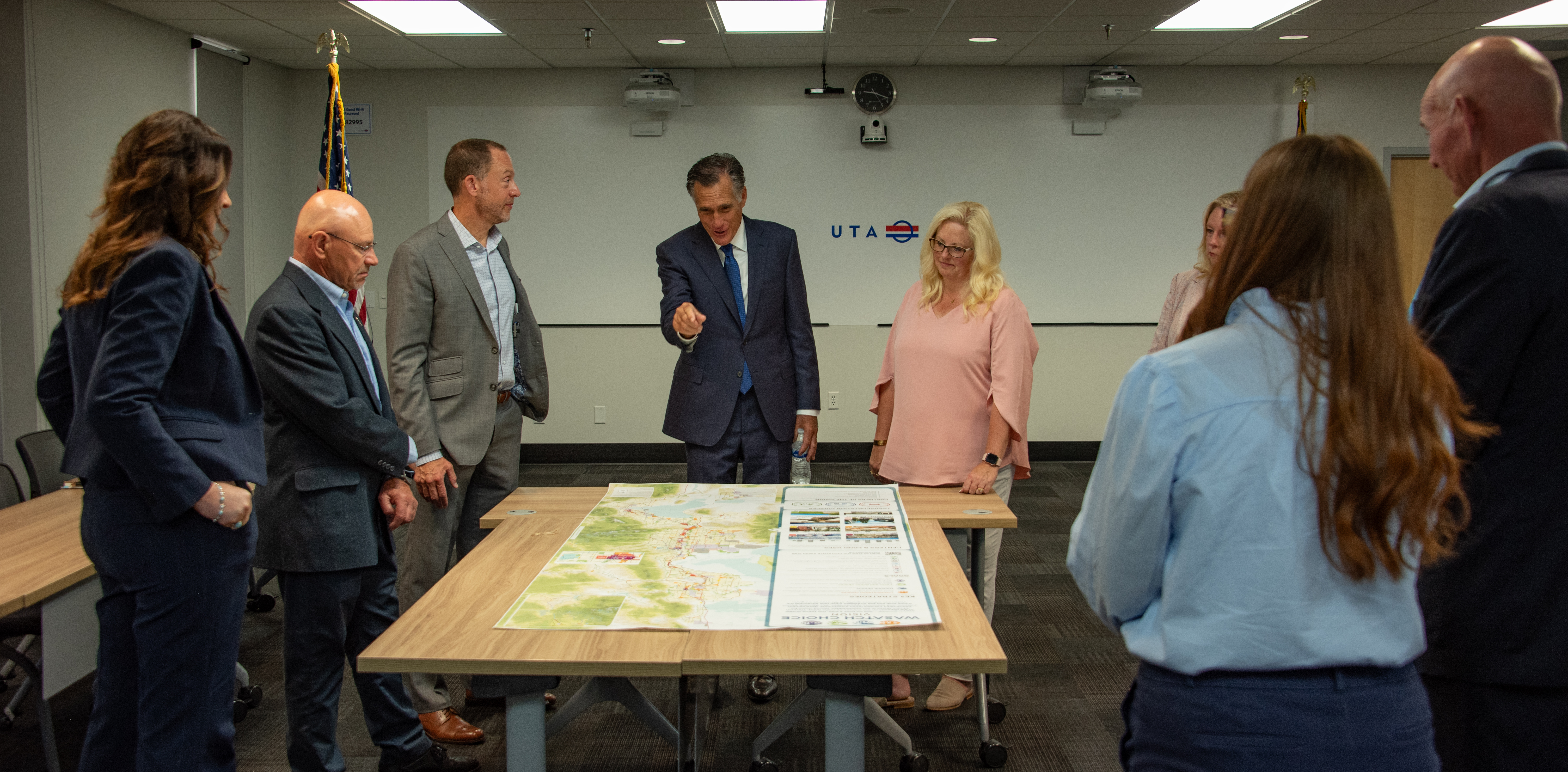 On Monday, August 21, Senator Mitt Romney visited the Utah Transit Authority (UTA) to learn about how UTA and other local associations utilize federal funding. The day began at the Salt Lake Central Station, where the senator and his team were met by a group that included the UTA Board of Trustees - Carlton Christensen, Beth Holbrook, and Jeff Acerson - as well as representatives from the Utah Department of Transportation (UDOT ), the Wasatch Front Regional Council (WRFC), and the Mountainland Association of Governments (MAG).